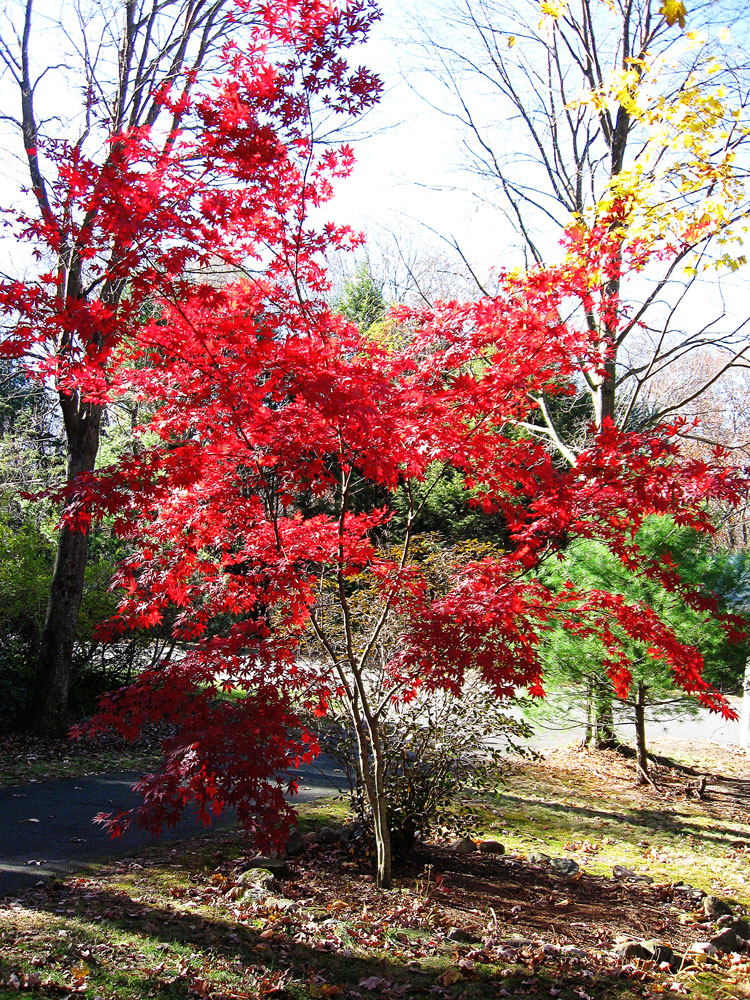 Documenting the brief turn of a leaf… this Japanese maple leaves turn red for about 10 days. And without fail, every year within those 10 days, we get a storm that blows the delicate leaves off and away.