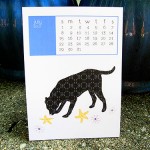 Printed on recycled cardstock, the calendar is colorful, eco-friendly in its paper/printing/packaging and each 5×7.5″ calendar page can be cut and then sent as a 5×5 card when the month is over.