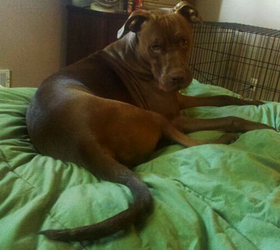 Mom calls me an American Mutt… they think I’m part American Staffordshire, part Lab, part Great Dane, part Boxer or Bulldog. I’m pretty sure I’m also part Chihuahua, because regardless of what anyone says, I’m a lap dog!