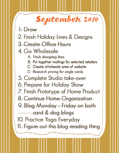 Another big one… blogging every day, Monday to Friday, on both the card and dog blogs. Whew! I didn’t really mind the schedule until this last week of the month. I think I was energized by all the newness of the posts at the beginning of the month. For October, I will go back to five days a week between the two blogs and analyze September numbers to see if blogging daily on both is worth it.