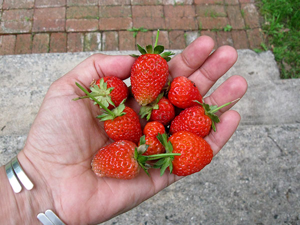 I had picked some strawberries from our patch that morning. I planted the patch about four years ago and last fall was the first real crop we had enjoyed. And apparently, these are plants that bear fruit in both spring and fall (who knew?), so we’ve been enjoying homegrown, organic strawberries for a week or so.