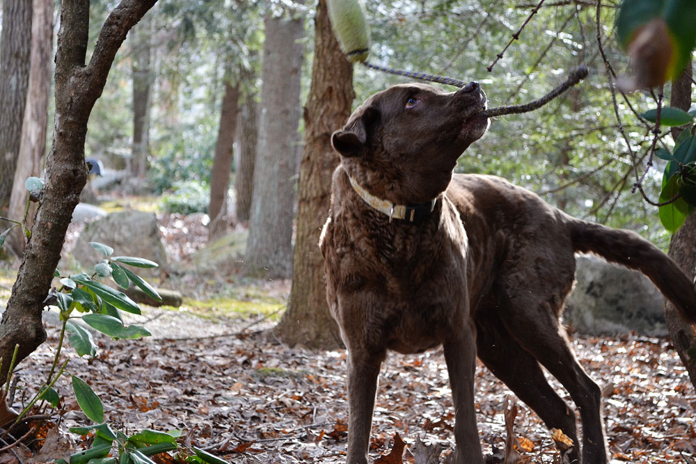 She holds the Kong rope in her mouth and whips it, flips it, roundhouses it around her head.